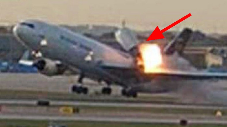 Das Unglück in der Sequenz. Ab Bild 2 löst sich das Triebwerk sichtbar. UPS