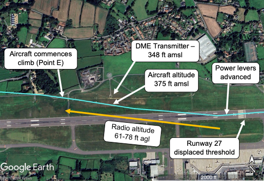 Skizze zum Zwischenfall. AAIB/Google Earth