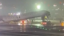 Das Feuerwehrfahrzeug war laut Angaben der Port Authority of New York and New Jersey zu einem anderen Einsatz unterwegs, als es mit dem Flugzeug zusammenstieß. Auf Bildern, die Sender wie CNN und NBC News zeigen, ist die Bombardier CRJ900 zu sehen, deren Heck auf dem Boden aufliegt, während die völlig zerstörte Nase des Flugzeuges in der Luft steht.