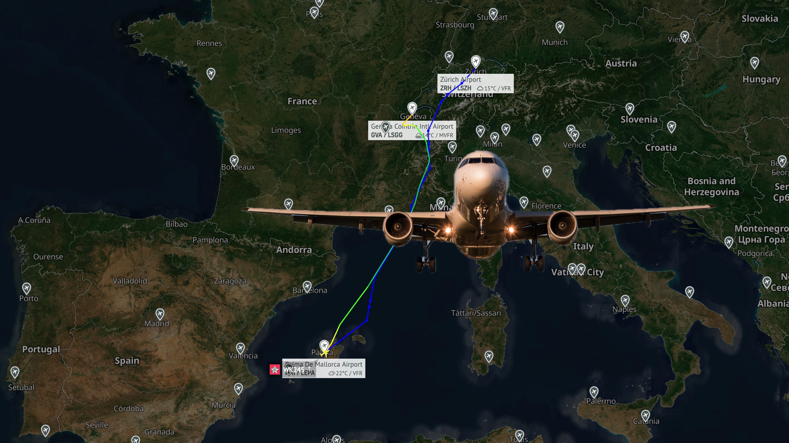 Jeden Samstag geht Edelweiss-Flug WK245 von Palma de Mallorca nach Zürich. Durchgeführt wird er von Schwester-Airline Swiss. Start ist planmäßig um 11:20 Uhr, die Flugdauer beträgt meist etwas mehr als anderthalb Stunden. Ankunftszeit in Zürich ist laut Flugplan 13:15 Uhr. Zuletzt fand der Abflug in Palma oft etwas verspätet statt, aber nie mehr als eine Stunde zu spät.