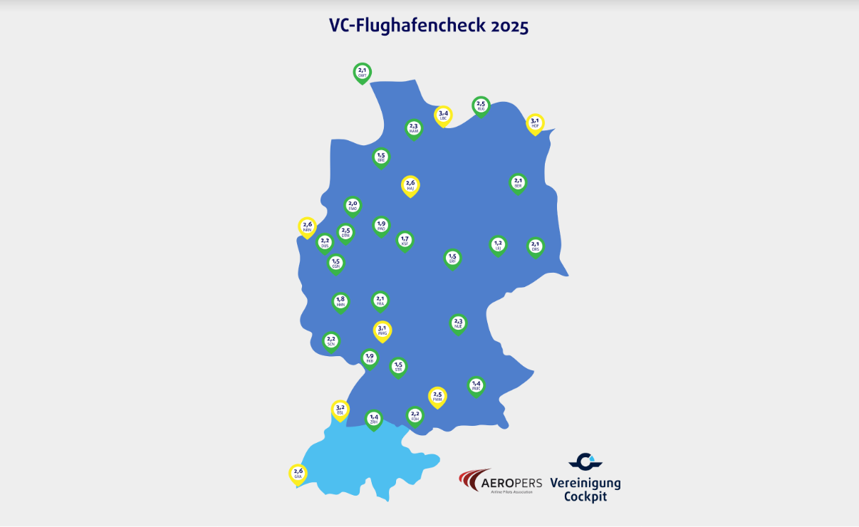 Die Noten des Flughafencheck 2025. Vereinigung Cockpit