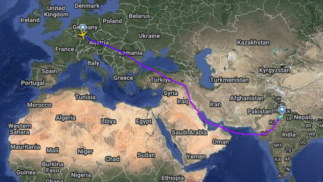 Lufthansa-Flug LH760 von Frankfurt nach Delhi am 30. April: Umfliegt Pakistan.