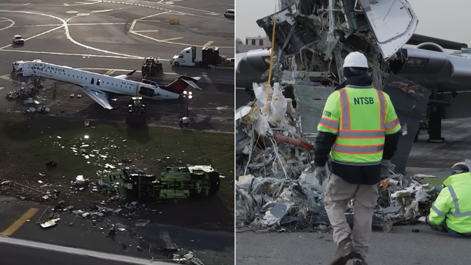 Unglück von Air Canada in LaGuardiaNeues Video zeigt Wrack der Bombardier CRJ 900 aus der Luft und aus der Nähe