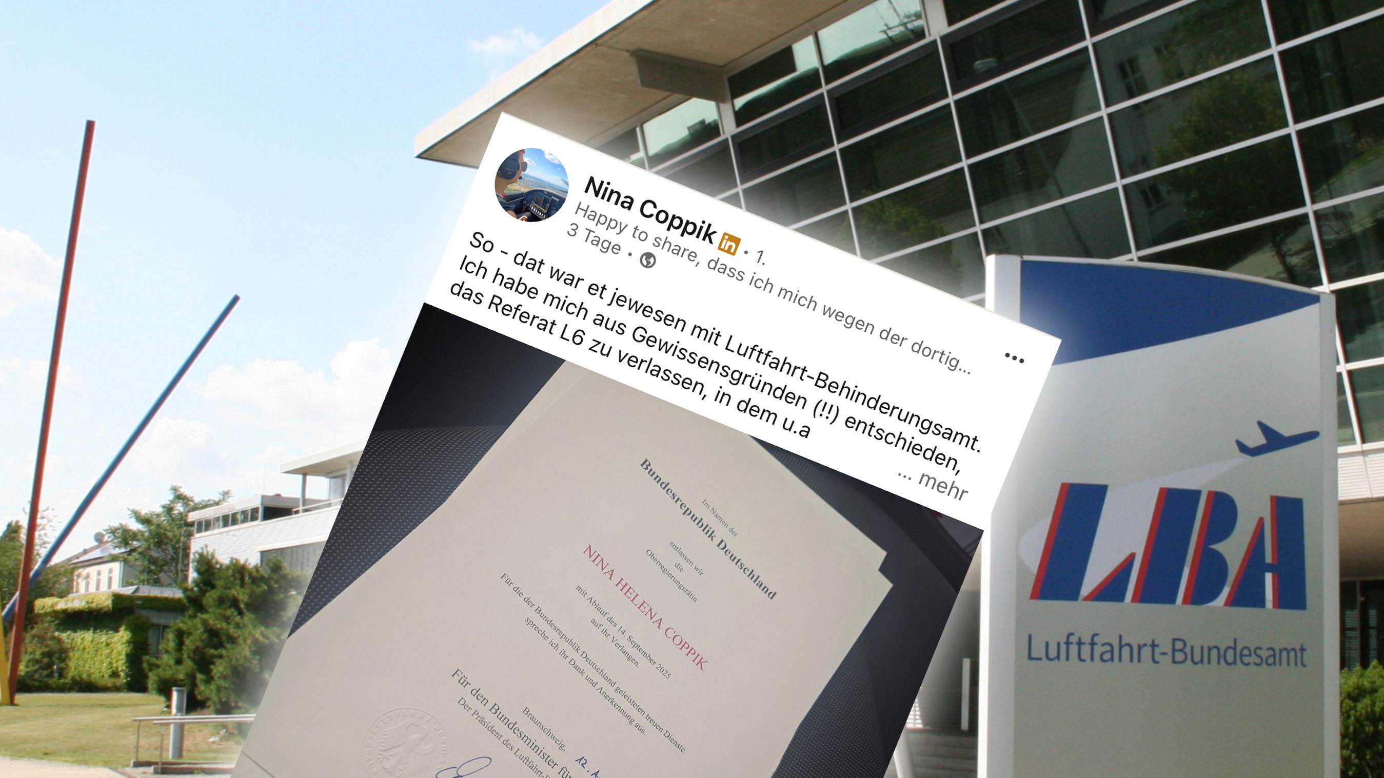 Das Luftfahrt-Bundesamt äußert sich mittlerweile auf seiner Homepage öffentlich zum Post von Coppik. Das geschehe «zum Schutz aller seiner Beschäftigten». «Die in dem Post gegen das LBA und insbesondere gegen das Referat L 6 erhobenen Unterstellungen weisen wir zurück.»