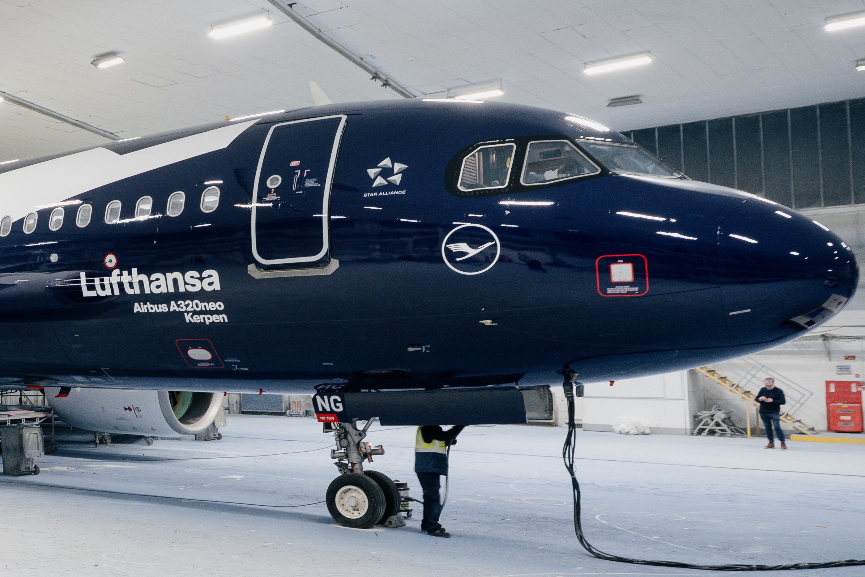 Vorne auf dem Rumpf der D-AING stand bisher über den Fenstern der Lufthansa-Schriftzug, darunter nur «Airbus A320 Neo». Nun hat das acht Jahre alte Flugzeug die 100-Jahre-Bemalung von Lufthansa erhalten - und ein Foto des neu lackierten Fliegers zeigt, dass noch etwas hinzugekommen ist. Der Lufthansa-Schriftzug ist unter die Fenster gerückt, darunter steht «Airbus A320 Neo» - und darunter «Kerpen».