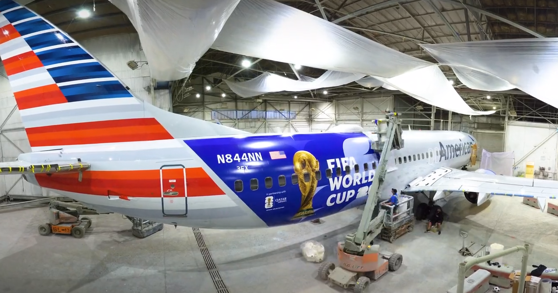 Darüber hinaus tragen «mehr als 1460 Flugzeuge, die den Großteil der Flotte von American Airlines repräsentieren,» einen Aufkleber der Fußball-Weltmeisterschaft, so die Fluglinie.