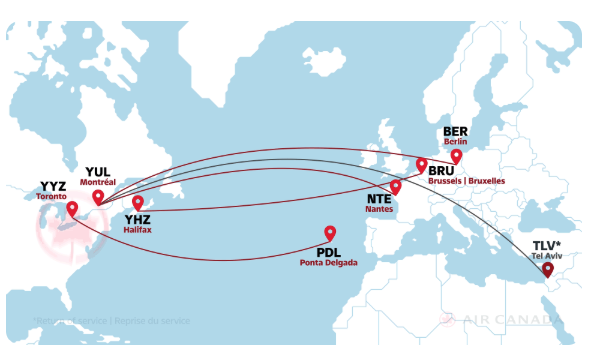 Zusätzlich nimmt Air Canada ihre saisonale Route Montréal – Tel Aviv wieder auf und setzt hierfür eine Boeing 787 ein.