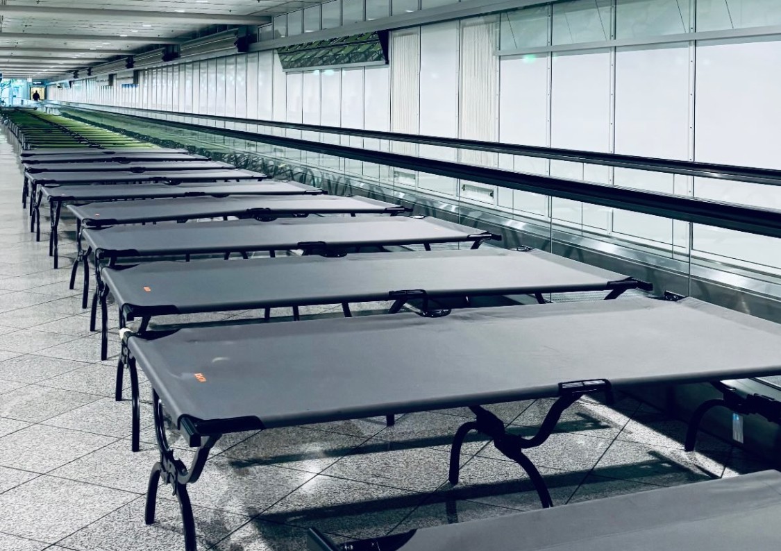 Feldbetten am Flughafen München am Dienstag (7. Oktober). Leserbild